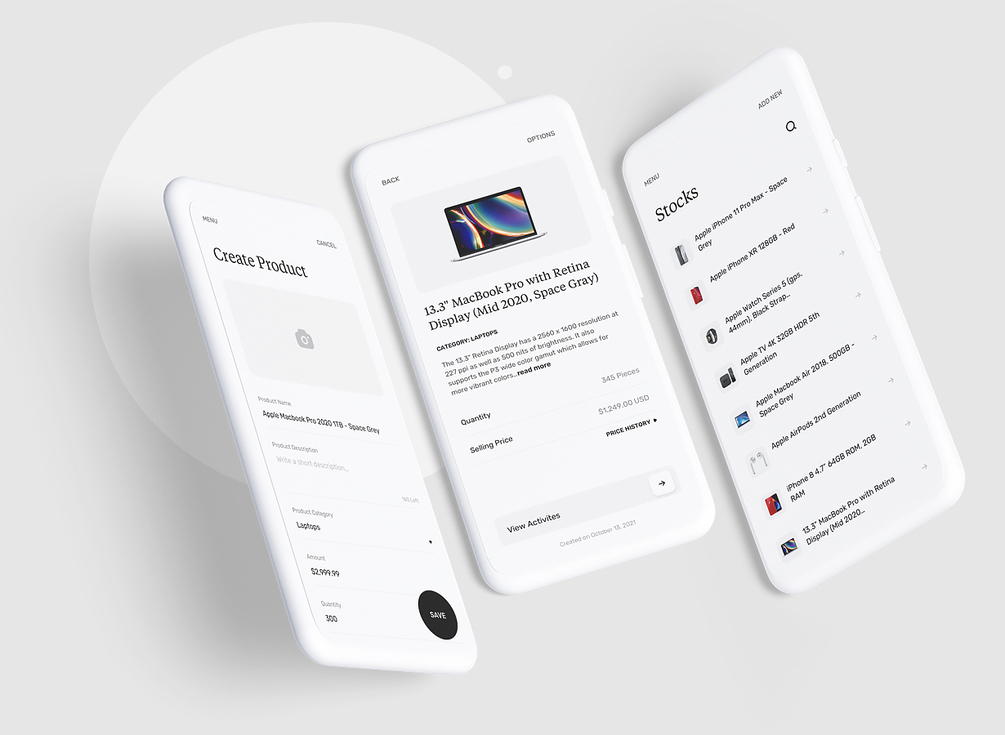 20 premium screen carefully crafted for mobile applications that offers products and sales tracking solutions for small scale businesses that sell directly to customers.